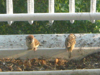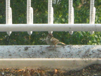 先日話したベランダにくる雀の話。いつも見てるだけだけどもう可愛さ余って今日はカメラ持ってパソコンの前に座ったのよ。窓に近づくと飛んでっちゃうし、声が聞こえてからこっそりカメラ起動させてズーム十倍で撮った。マジかわええ笑。ズームの大きさにうちの窓の汚さが相まって恐ろしく汚い画像になったけどいやほんとかわええ、見てコレ。あのベランダの白い柵をぴょんぴょん移動してたりもすんだよ、やばいってかわいいっても、うおおお・・・!ちなみに見える黒い点々は掘り出された土であって散らばりまくった糞じゃない笑。